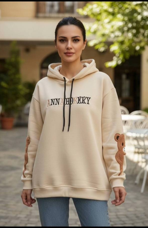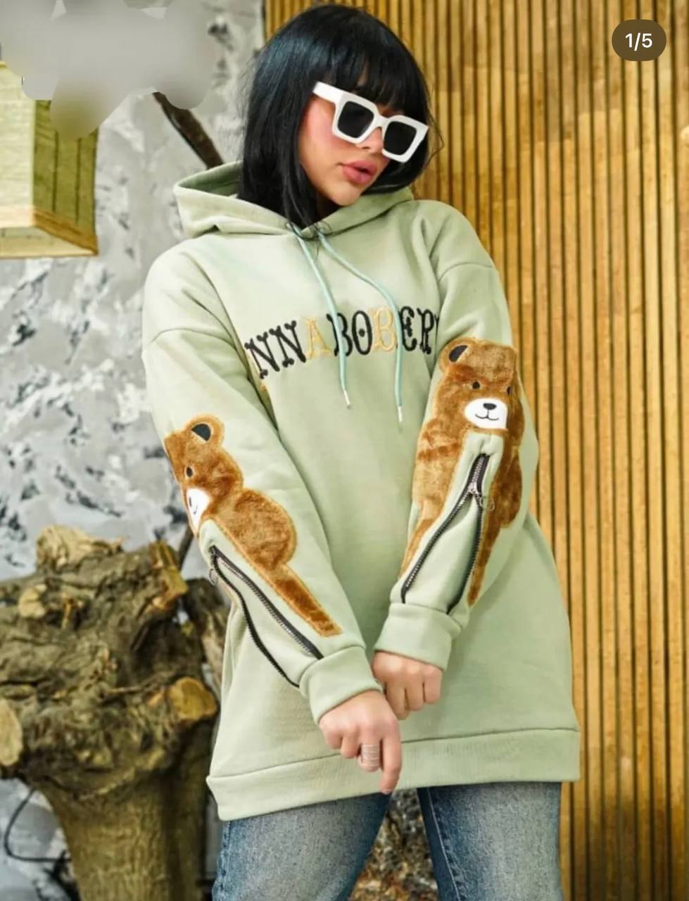 هودی کلاه دار دورس تو کرکی طرح آستین خرسی و نوشته برجسته