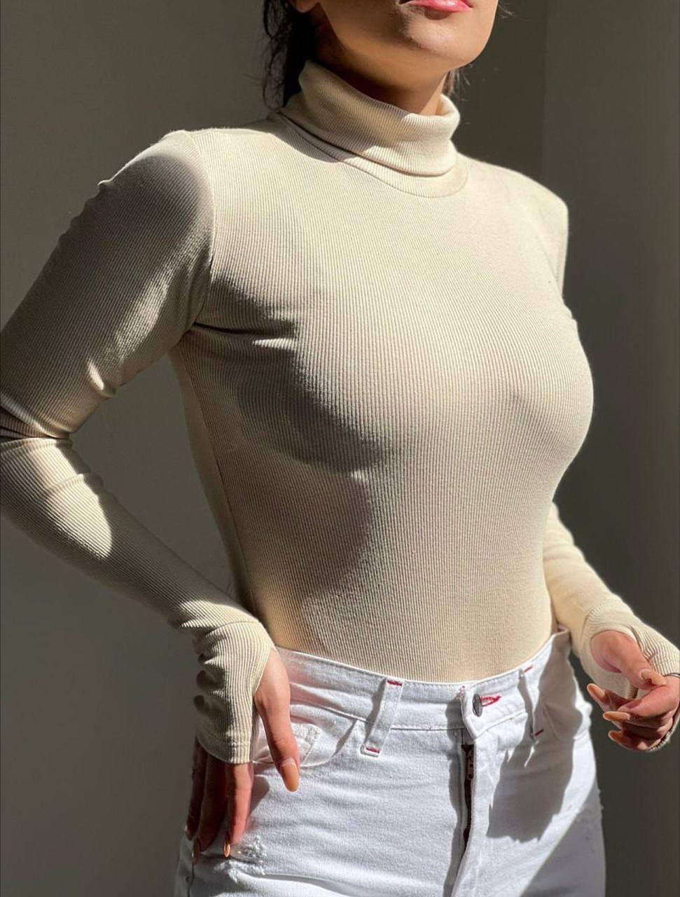 بلوز یقه اسکی آستین فینگردار کبریتی