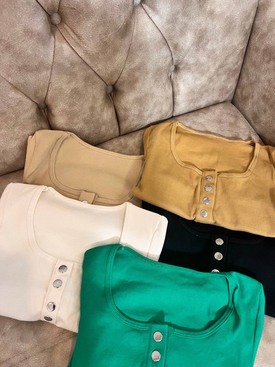 بادی یقه خشتی دکمه دار آستین فینگردار کبریتی