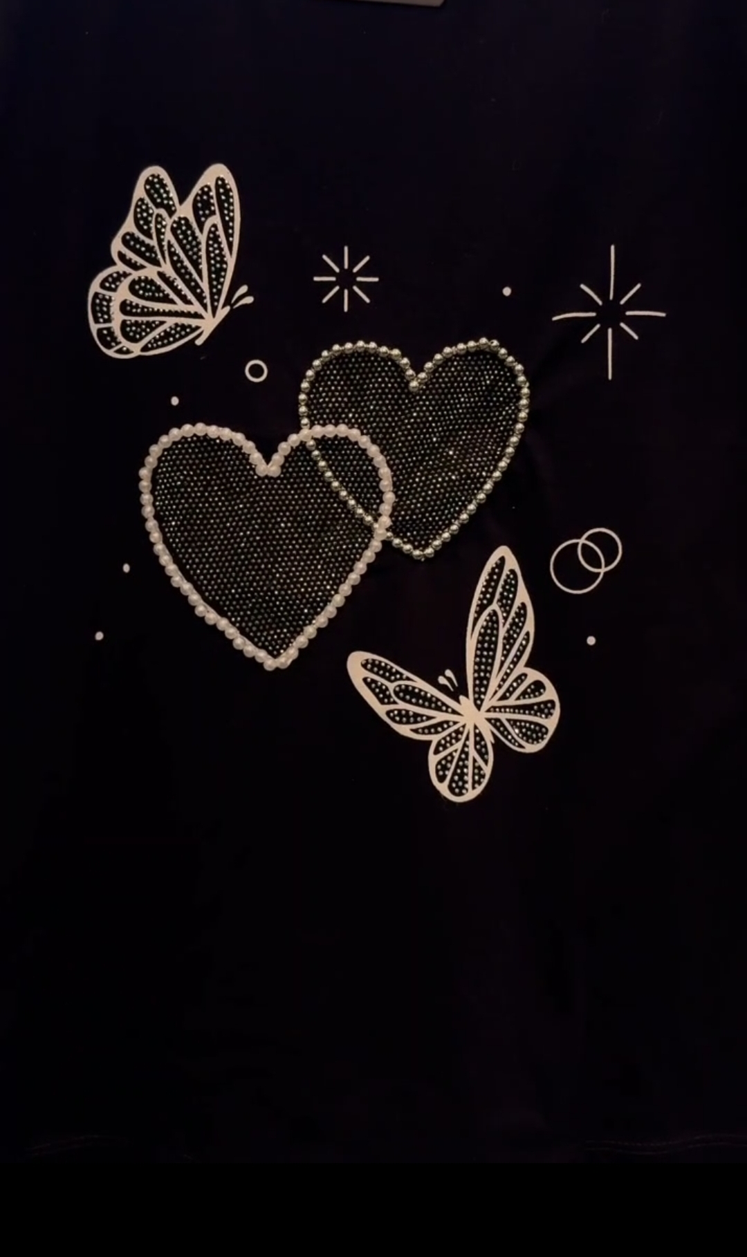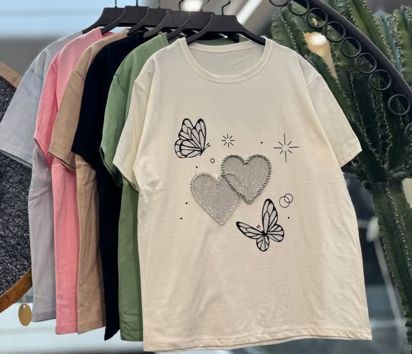 تیشرت مروارید دوزی طرح قلب و پروانه جنس نخ پنبه